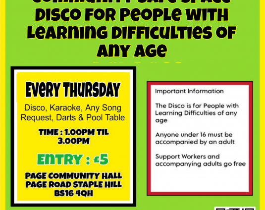 COMMUNITY SAFE SPACE DISCO FOR PEOPLE WITH LEARNING DIFFICULTIES OF ANY AGE